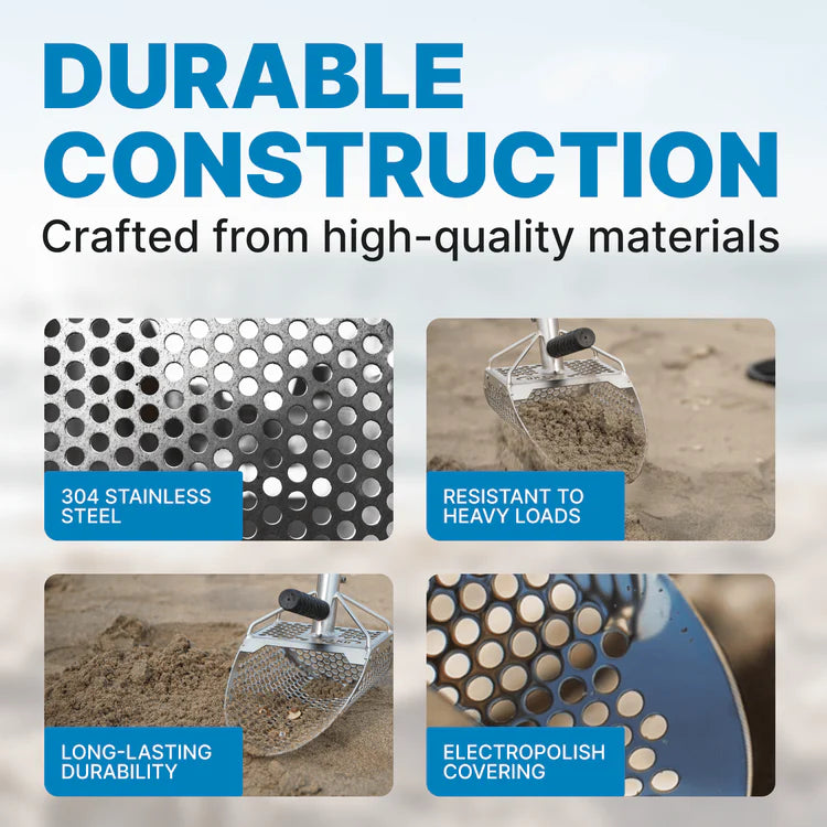 The CKG Heavy-Duty Sand Scoop is engineered for durability and efficiency, featuring an 11x7 wide stainless steel body for high-volume sifting. Designed for tougher terrains, this scoop is perfect for digging through wet sand, gravel, and compacted surfaces. Its robust build ensures long-lasting performance, while the ergonomic design makes it easy to handle during prolonged detecting sessions. This sand scoop for metal detecting is the tool of choice for professional treasure hunters who demand reliability and precision.