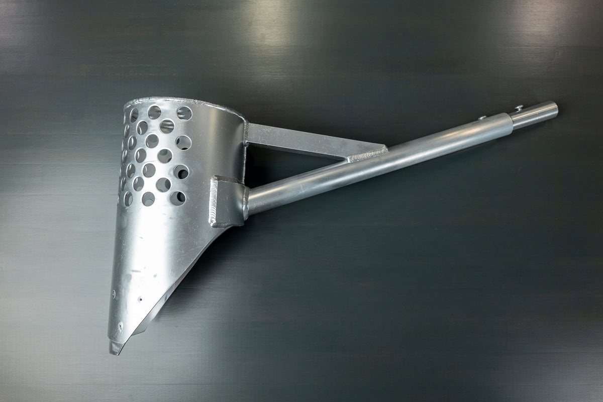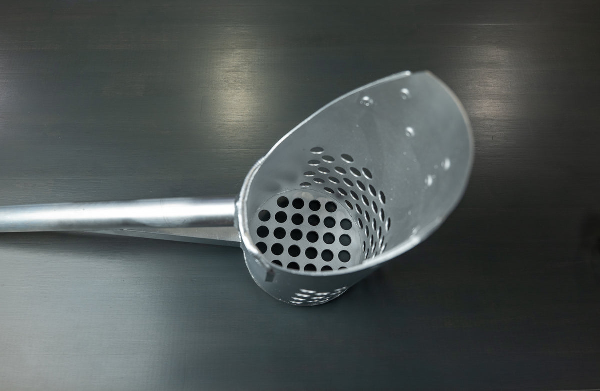 6inch scoop with a 48inch shaft that can be conveniently collapsed for transport.