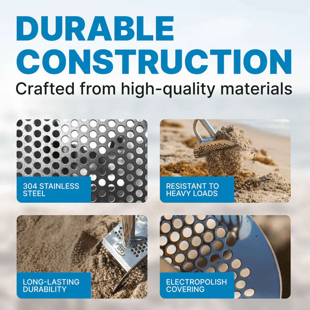 The CKG Diving Sand Scoop is the ultimate tool for beach treasure hunting. Made from durable stainless steel, it features 8 mm round holes that efficiently sift sand to reveal hidden treasures like coins, rings, and jewelry. This metal detector scoop is designed for high performance, ensuring you spend less time sifting and more time finding valuables. Its rust-resistant structure guarantees longevity, while the lightweight build allows for prolonged use without fatigue. Ideal for beginner and professional treasure hunters, this scoop simplifies your detecting adventures.